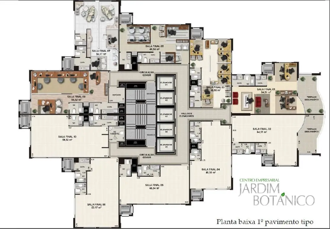 - Banheiro de acesso para PNEs no hall de cada pavimento