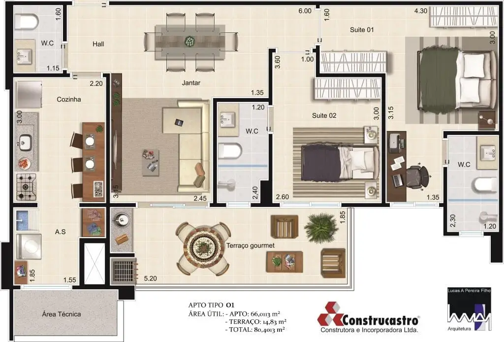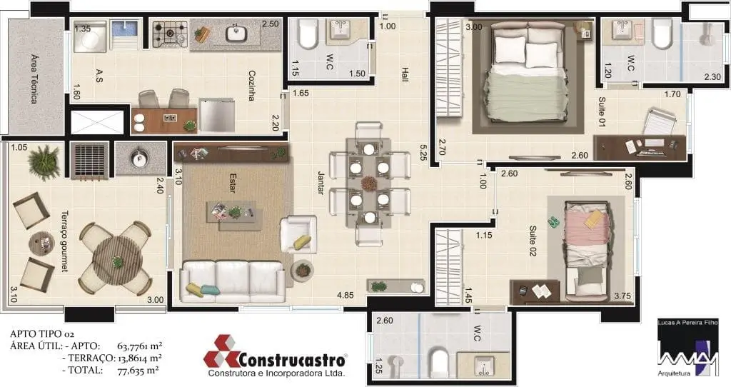 - Acabamento de alto padrão com porcelanato de qualidade superior nas unidades-tipo e nas áreas comuns